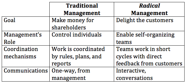 Look at companies like Apple, Salesforce.com, or Amazon. Why are these companies so profitable and so well regarded on Wall Street? Because they delight their customers. They innovate. They create new value and learn to thrive in the 21st century. And they are great places to work. Look at companies like General Electric or Walmart. Their stocks have gone nowhere. Their command and control culture has not enabled them to innovate.